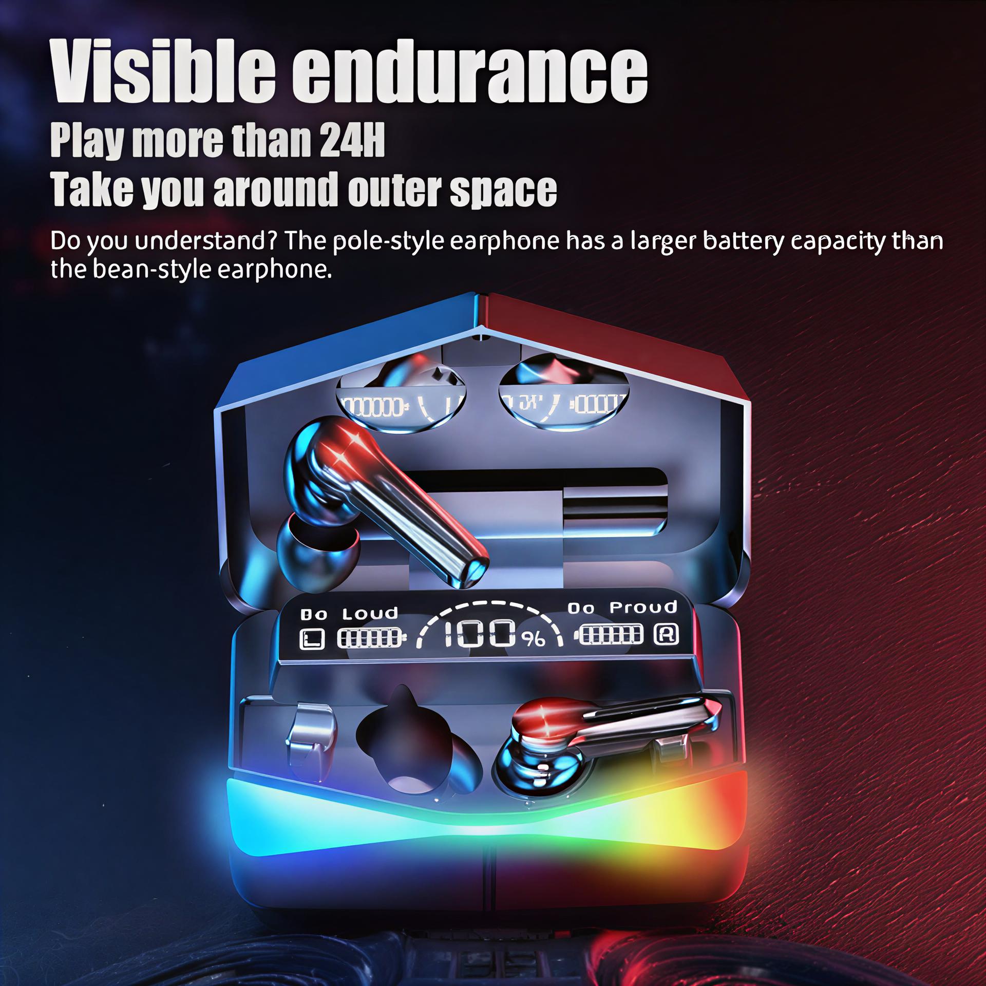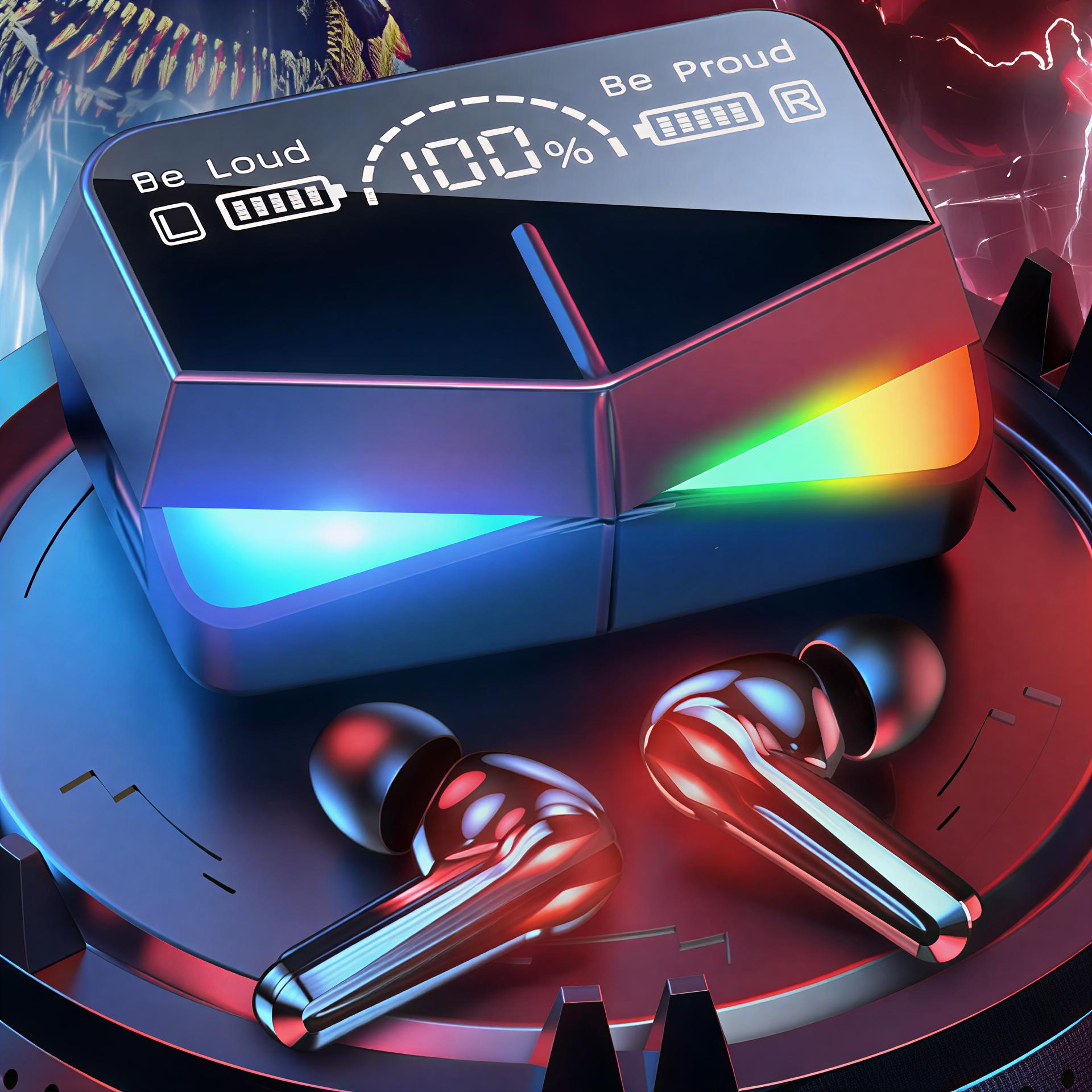 These RGB Gaming Wireless Earbuds are designed for immersive sound, low-latency performance, and a bold futuristic look. Featuring a smart LED display charging case and dynamic RGB lighting, they deliver a powerful audio experience ideal for gaming, music, and calls. The ergonomic earbuds ensure a secure and comfortable fit for long sessions.